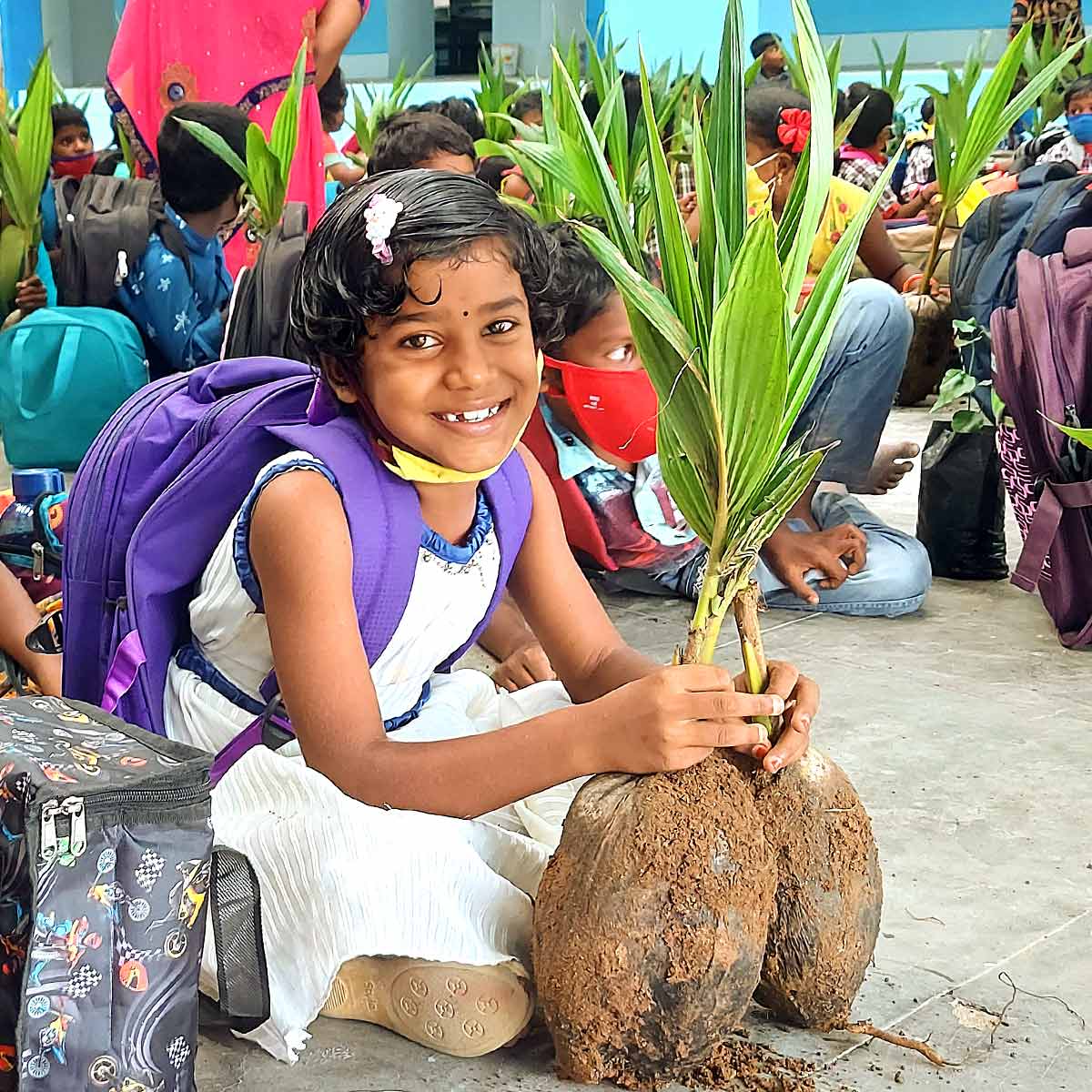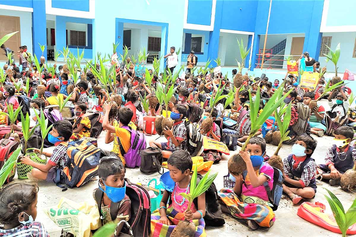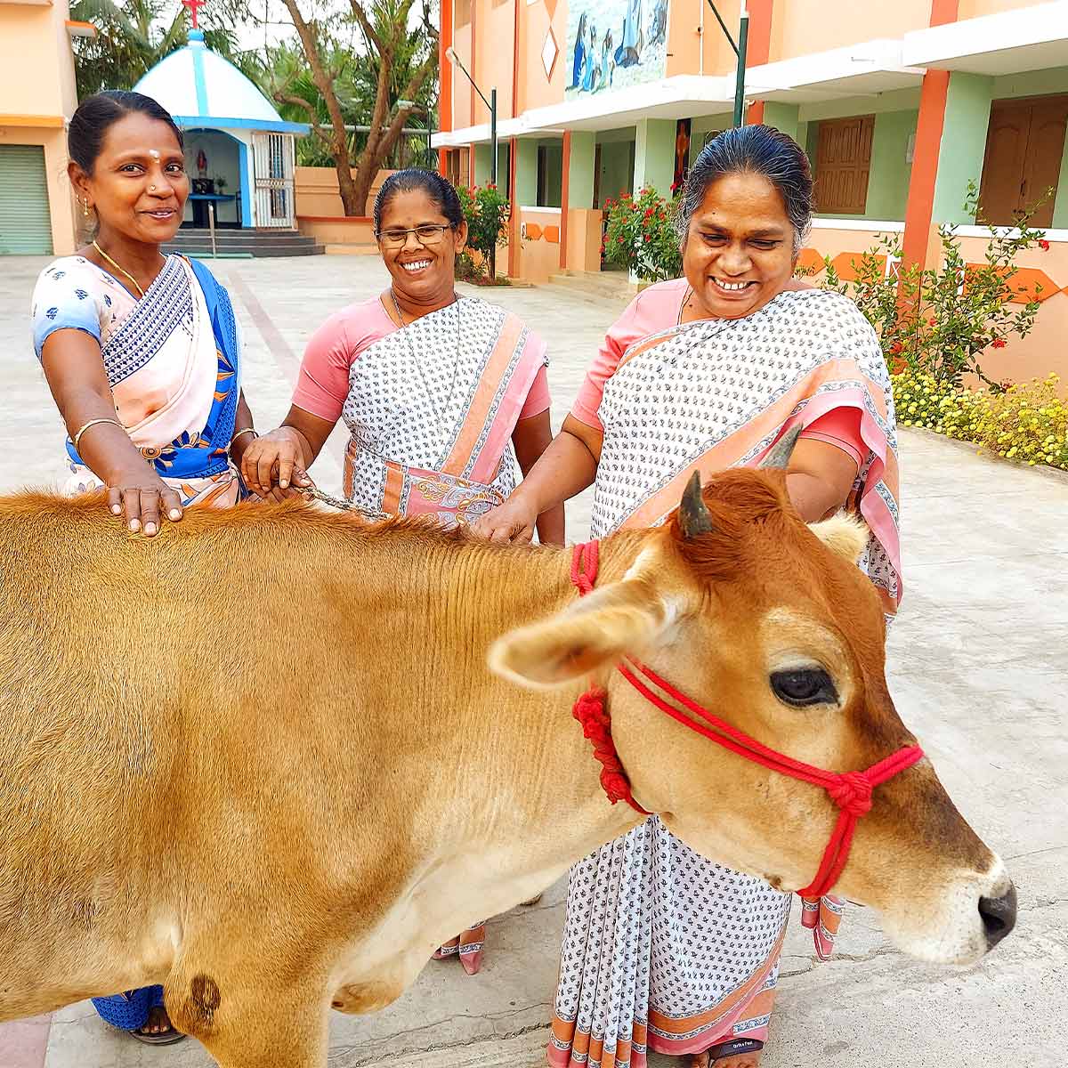 Alleine mit der Unterstützung mittels Spenden für das Schulgeld ist es nicht getan. Schließlich sollen die Familien mittelfristig in der Lage sein, ihre Kinder selbst zu ernähren und ihnen Schulbildung zu ermöglichen. Deshalb werden von der Vidiyal Community weitere Maßnahmen umgesetzt, die die Situation nachhaltig verändern. Eine davon ist die Finanzierung junger Rinder für arme Familien. Die Milch deckt den Eigenbedarf von Kindern und Schwangeren ab, vor allem aber können die Familien durch den Verkauf von Milchprodukten ein wichtiges, kleines Zusatzeinkommen generieren, das es ermöglicht, ihre Kinder zur Schule zu schicken. Auch die Verteilung von Setzlingen für Kokospalmen ist ein Weg, mehrere Fliegen mit einer Klappe zu schlagen. Jede Familie der Schulkinder erhält zwei Jungpflanzen. Nach drei bis fünf Jahren wachsen die ersten Früchte, die ein wichtiger Bestandteil der südindischen Küche sind. Die Kinder kümmern sich gemeinsam mit ihren Eltern um die Pflanzen, die Blätter werden als Flechtmaterial für Zäune und Hütten und schlussendlich als Brennmaterial verwendet. Dabei leisten die Familien auch einen wichtigen Beitrag für die Verbesserung der Böden, die nach wiederholten Verwüstungen durch Wirbelstürme so wiederaufgeforstet werden können.