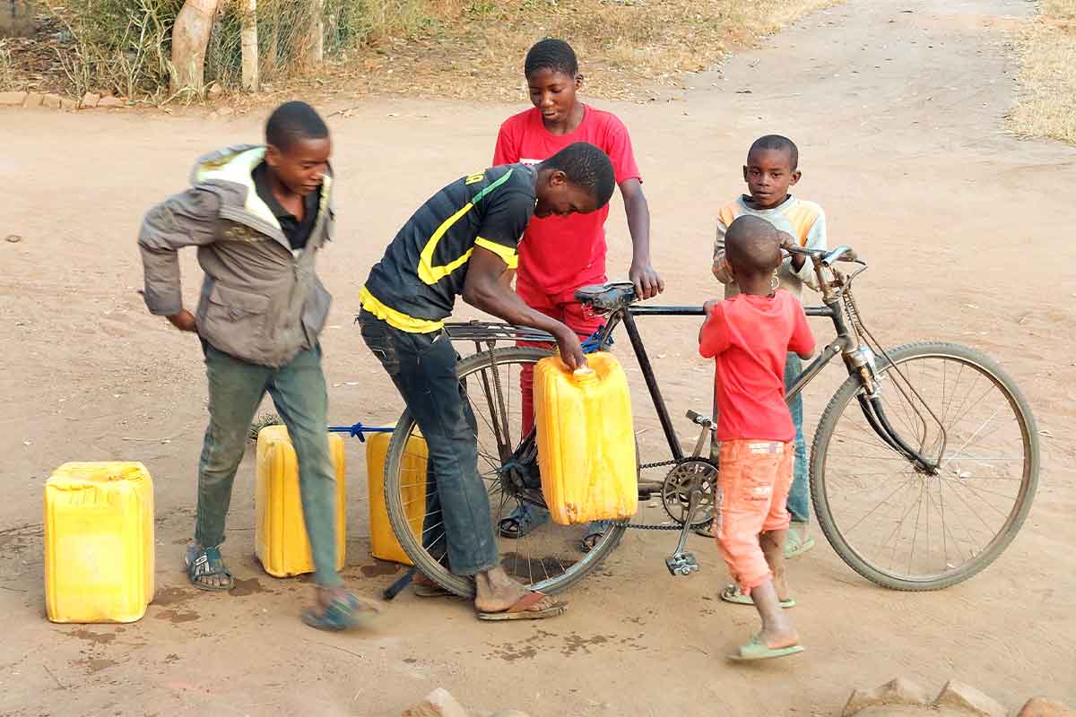 In Lukobe ist der Tiefbrunnen jetzt das Herzstück des Dorfes. 160 Meter tief musste gebohrt werden, um auf Trinkwasser zu stoßen. Die Pumpe und Entnahmestelle markieren seither das Dorfzentrum. Bereits mehrere hundert Menschen kommen täglich hierher, um Wasser zu holen. „Es werden immer mehr, denn es spricht sich schnell herum, dass es hier sauberes Wasser für jeden gibt“, sagt Pfarrer Simon. Bereits in den frühen Morgenstunden herrscht reges Treiben rund um die Wasserstelle hier in den Außenbezirken der Stadt Morogoro. Überwiegend sind es Frauen und Kinder, die das kostbare Gut in große, gelbe Wasserkanister füllen und es zu Fuß oder mit dem Fahrrad nach Hause bringen.