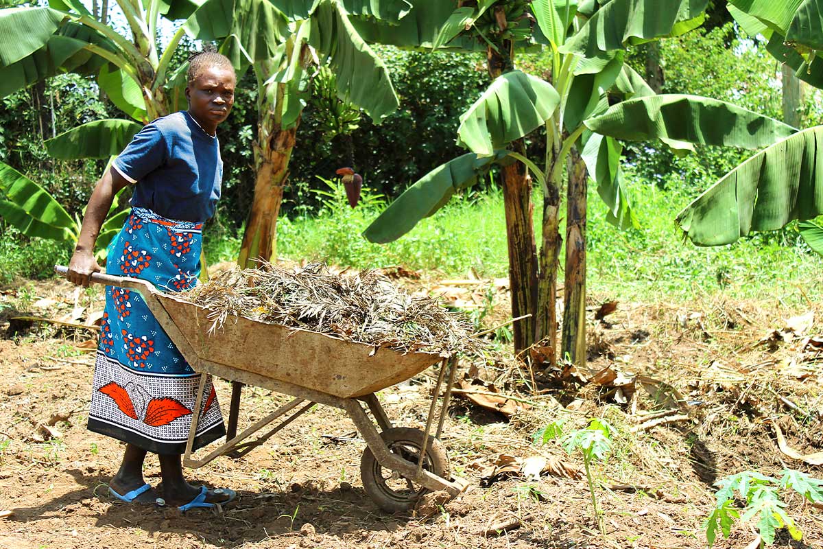 „Wie die meisten im Bungoma County habe auch ich fast nur Mais angebaut“, erzählt Rosemary Amacar. Obwohl die Region am Mount Elgon im Westen Kenias zu den fruchtbarsten Gegenden des Landes gehört, fielen die Ernten immer dürftiger aus. „Der Grund dafür war die langjährige Monokultur, die zu ausgelaugten Böden und Schädlingsbefall führte.“ Seitdem sie der neu gegründeten „Matisi Boresha Group“ beitrat, hat sich ihr Leben von Grund auf geändert. „Meine Familie bekommt nun jeden Tag frisches Obst und Gemüse auf den Tisch“, schwärmt Amacar. „Die Kinder ernähren sich viel gesünder. Außerdem erwirtschaften wir durch den Verkauf der Feldfrüchte und ihrer Samen zusätzliches Einkommen.“ Ein entscheidender Faktor für den Aufschwung war die Rückkehr zu einer traditionellen Anbauform: dem Waldgarten. Die Wiederentdeckung der Agroforstwirtschaft erwies sich als ein echter Segen für die Mitglieder der Gruppe. In den Waldgärten werden Bäume, Sträucher und bodendeckende Pflanzen auf einer gemeinsamen Fläche angesetzt. Die Böden werden dadurch vor direkter Sonneneinstrahlung und vor Starkregen geschützt und sind deutlich fruchtbarer. Aufgrund ihres hohen Ertrags werden Waldgärten auch ‚food forests‘ – also Nahrungswälder – genannt. Agroforstwirtschaft wird in Ostafrika bereits seit Jahrtausenden praktiziert, geriet jedoch durch die Kolonialisierung in Vergessenheit. Traditionelle Waldgärten zeichnen sich durch ihren mehrstöckigen Aufbau aus. Im Erdgeschoss finden sich bodendeckende Pflanzen (z. B. Bohnen) sowie Wurzel- und Knollenfrüchte (z. B. Süßkartoffel). Der erste Stock umfasst buschhohe Pflanzen wie Maniok, Mais oder Passionsfrüchte. Das zweite Stockwerk wird von bis zu mehreren Metern hohen Gewächsen wie z.B. Kaffeebäumen oder Bananenstauden gebildet. Das oberste Stockwerk sind schließlich massive Schattenspender wie die afrikanische Eiche (Afzelia africana) oder Albazia-Arten. Ihre herabfallenden Blätter tragen wesentlich zum Erhalt und zur Regenerierung der Böden bei. Rosemary Akisa Amacar ist in der Zwischenzeit zu einer Waldgarten- Botschafterin geworden: In ihren Trainings schult sie andere Kleinbäuerinnen, wie sie möglichst viel aus ihrem Land machen. Dazu zählt auch die Verwendung von biologischen Pflanzenschutzmitteln.