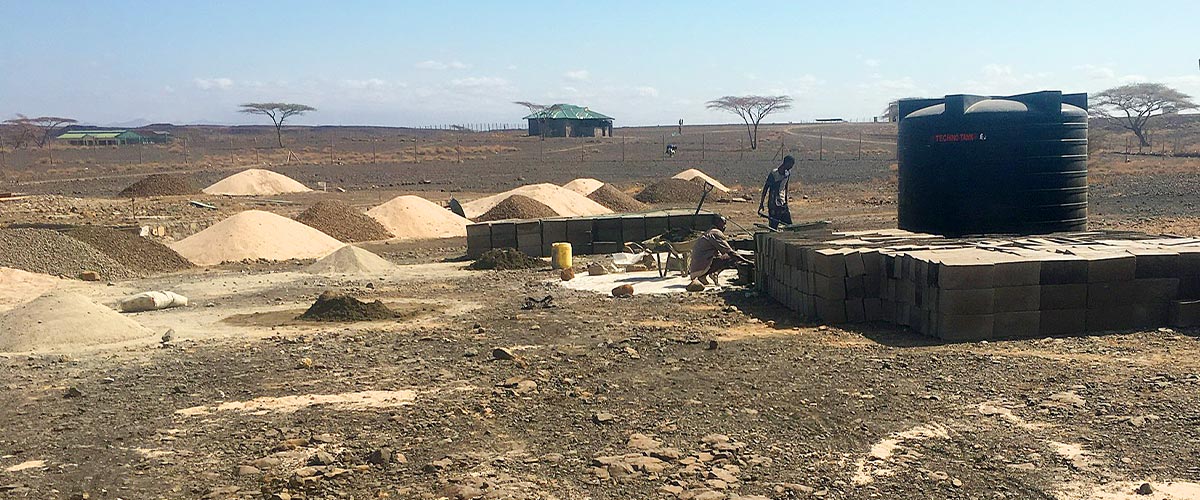 „Wir können nur bauen, wenn wir Wasser haben. Und das ist hier sehr selten. Zwei Mal jährlich regnet es, aber immer weniger. Letztes Jahr gerade mal 2 Stunden. Deshalb haben wir begonnen, neben unseren Regenwassertanks Brunnen zu bohren. Kein Wasser, kein Baufortschritt. Das Grundwasser hier ist extrem salzig, wir müssen es aufbereiten, um es verwenden zu können. Und die Transportkosten für Material sind eine große Herausforderung. In der Gegend gibt es nichts, womit wir bauen können. Obwohl die Bevölkerung mitunter mithilft, geht es nur langsam voran. Es gibt kaum ausgebildete Spezialisten vor Ort. „Hier gibt es keine Menschen mit Berufsausbildung“, erklärt Father Claudiu die Situation, „bei uns gibt es nur Kamele und Ziegen. Die Gemeinde hat uns den Baugrund zur Verfügung gestellt und die Menschen tun ihr Möglichstes, aber damit können wir keine Schule bauen.“