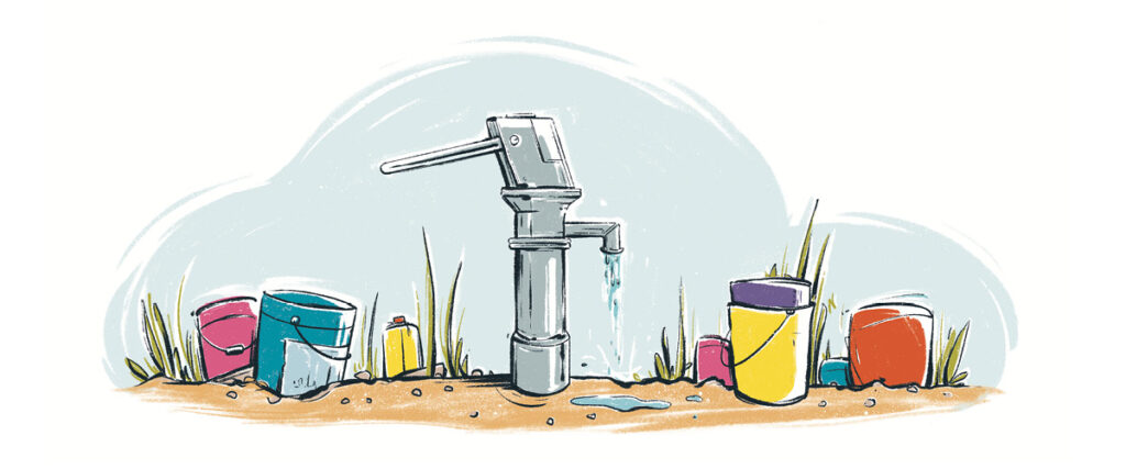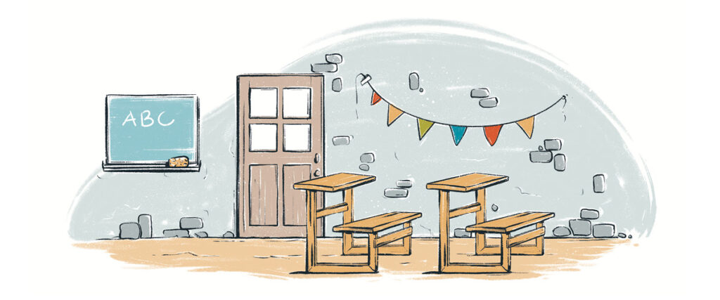 Ob Ziegen, Hühner oder Bäume, Schulbänke oder eine Brunnen-Handpumpe.